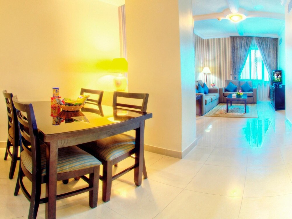 The Asfar Hotel Apartment has 48 decorated and neatly furnished suites that include 16 Studios, and 16 one and two-bedroom units, which feature separate sleeping and living areas alongside, with well-equipped kitchens in the one and two-bedroom suites. All guestrooms feature LCD TV, data port or wireless broadband Internet access, work desk, telephone with voice mail, mini-bar, iron and ironing board, hairdryer, electronic in-room locker, and coffee & tea-making facility.