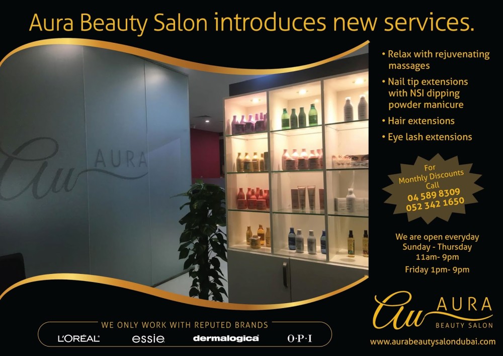 Aura Beauty Salon is a L’Oréal professional hair salon with Essie and OPI brands for nails and Moroccan bath & massages available for clients.